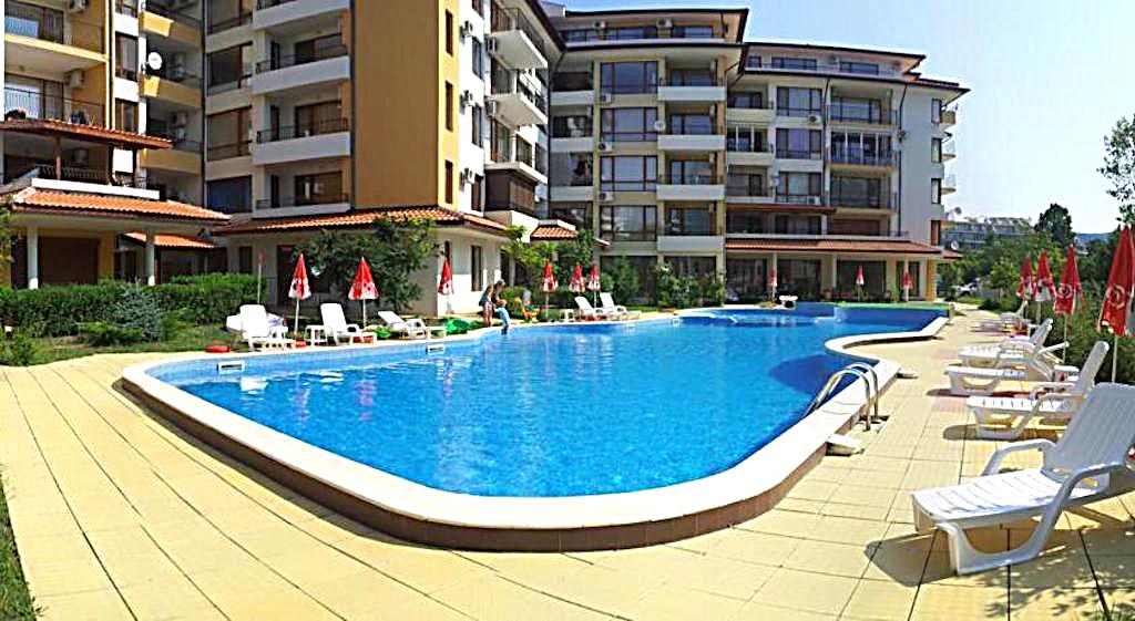 ЖК Diamond Bay расположен в северной части Солнечного берега, в 450 метрах от пляжа 🌊. Комплекс введён в эксплуатацию (Акт 16), такса поддержки — 10 €/м² в год. Это готовая вторичная недвижимость: квартиры продаются с мебелью и техникой 🏡.
