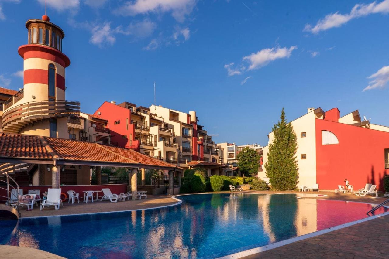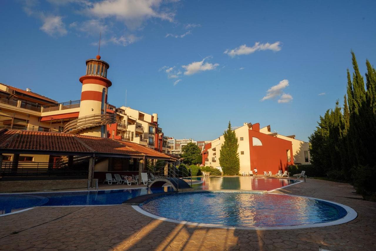 Между корпусами A и B расположено двухуровневое здание с панорамным рестораном, уютным вино-баром, фитнес-залом и сауной. А визитная карточка комплекса — маяк в центре территории, откуда открывается чарующая панорама на Черное море, Несебр и яхтенную гавань.