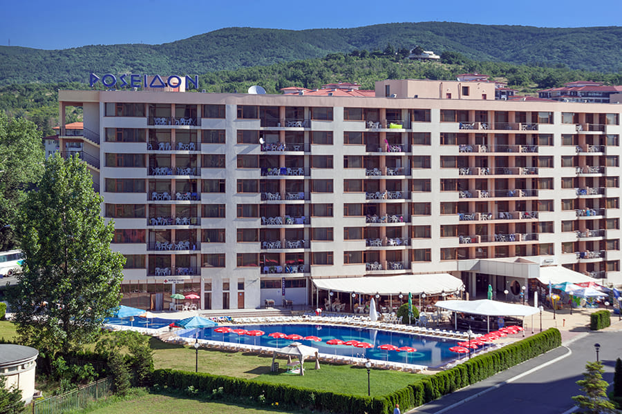 Poseydon — это современное жилое здание, находящееся в пяти минутах (250 м) от живописного черноморского побережья. Один из самых популярных курортов Болгарии. 8-этажный отель привлекает внимание оригинальной архитектурой и уютной атмосферой. Отель находится в окружении престижных пятизвездочных отелей, что придает ему статусное и привилегированное местоположение.