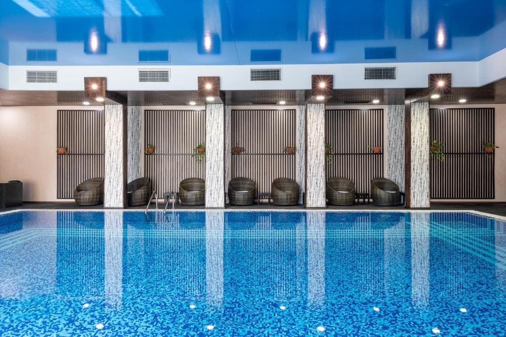 Комплекс объединяет жилые корпуса и пятизвёздочный отель — это даёт жителям сервис высокого уровня.