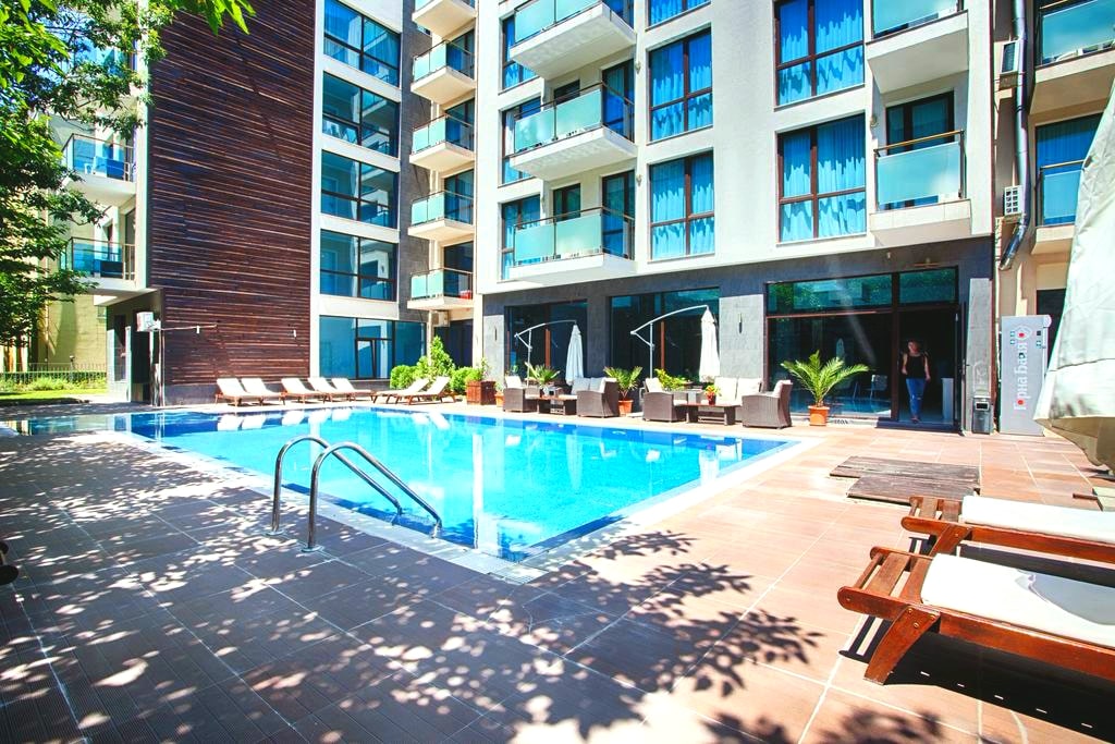 Добро пожаловать в жилой комплекс Sun Gate, уютный и комфортный уголок на Солнечном берегу, всего в 600 метрах от золотистого песчаного пляжа и на третьей линии от моря. Это место, где солнце светит 300 дней в году, а атмосфера создана для беззаботного отдыха и гармоничной жизни.