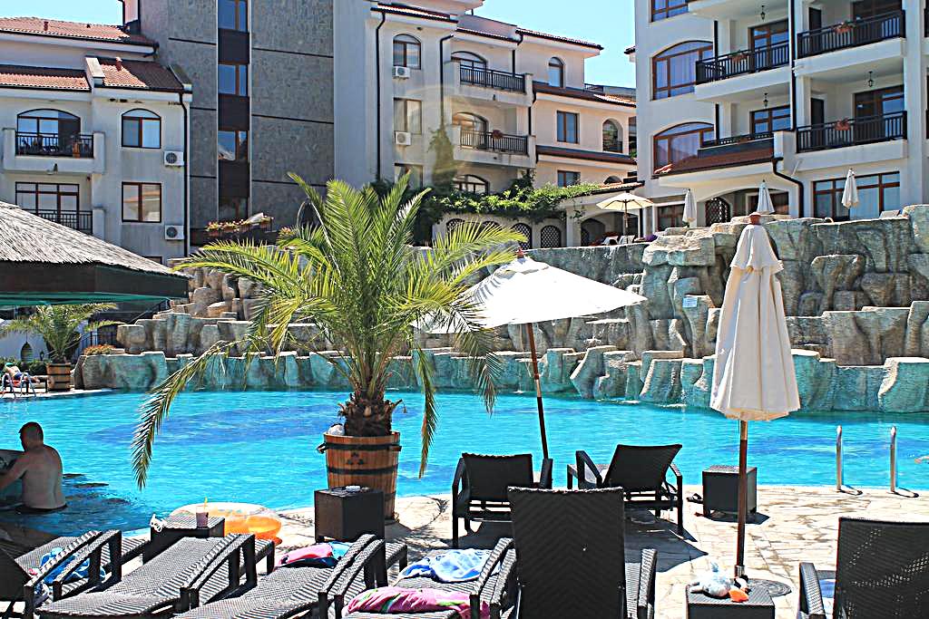 На территории обустроены два открытых бассейна с искусственными каскадами, крытый бассейн на случай прохладных дней, большой СПА-центр с сауной, джакузи и солярием. Для детей предусмотрен собственный бассейн и игровая площадка, а для родителей — рестораны, пиццерия, лобби-бар и даже уютный пиано-бар с живой музыкой.