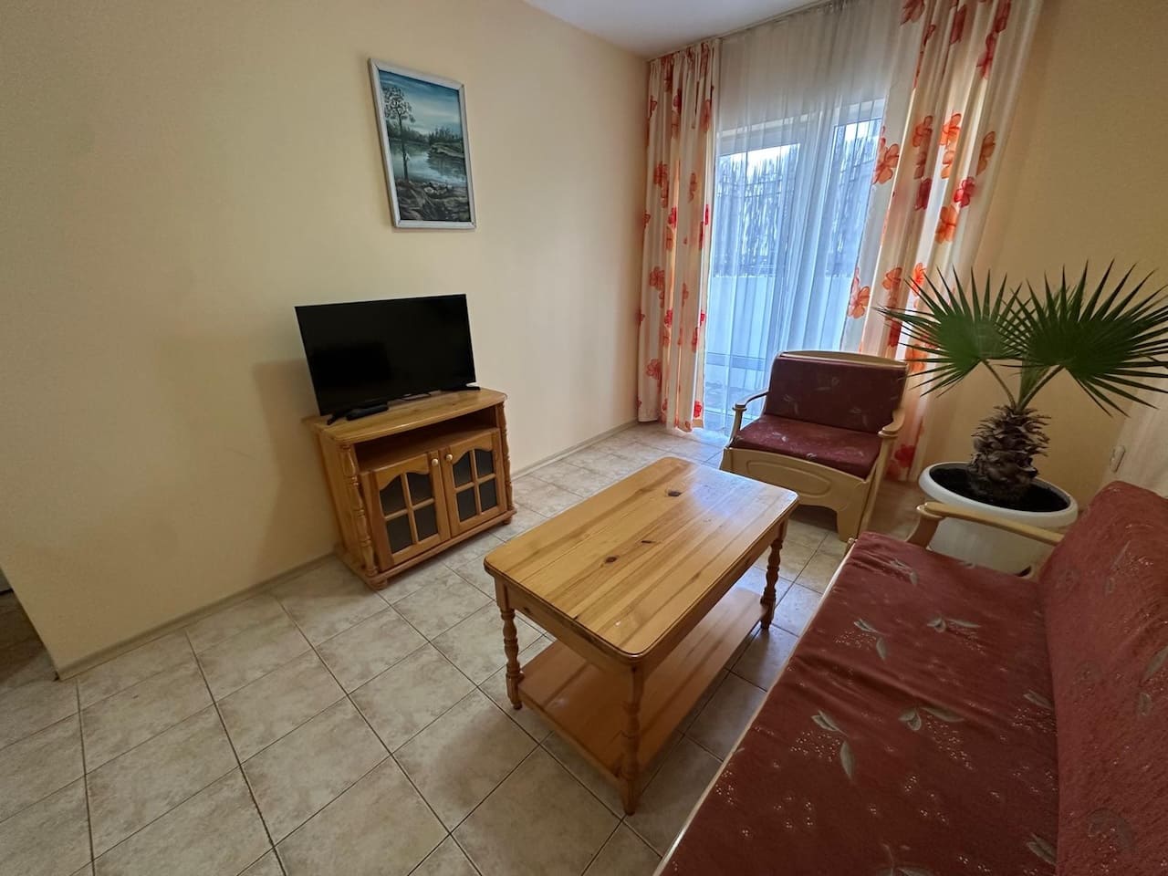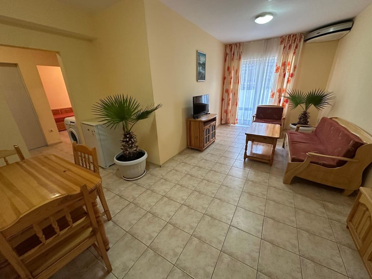 На продажу предлагается полностью меблированная трехкомнатная квартира, расположенная на партерном этаже жилого комплекса Belle Air в тихом районе морского курорта Святой Влас. Общая площадь апартамента составляет 66 кв.м, включая: