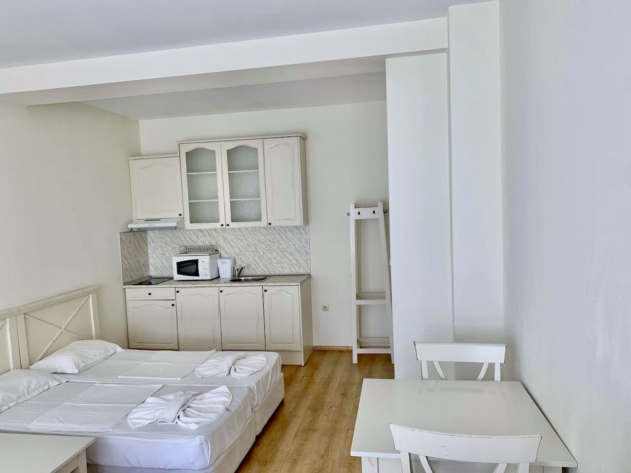 Эта студия — как белый лист: здесь легко начать новую главу. Пространство, свет, море рядом, уют — всё это уже здесь, осталось только вписать в него себя.