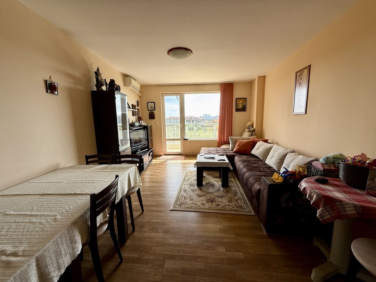 Иногда достаточно открыть балконную дверь, чтобы понять: вот он, ваш дом. Тёплый ветер с моря приносит аромат трав и виноградной лозы, внизу — зелёные луга, а впереди — силуэты курортных домов Несебр. Именно так начинается утро в этой уютной двухкомнатной квартире в жилом комплексе Jolly 🌿🌊