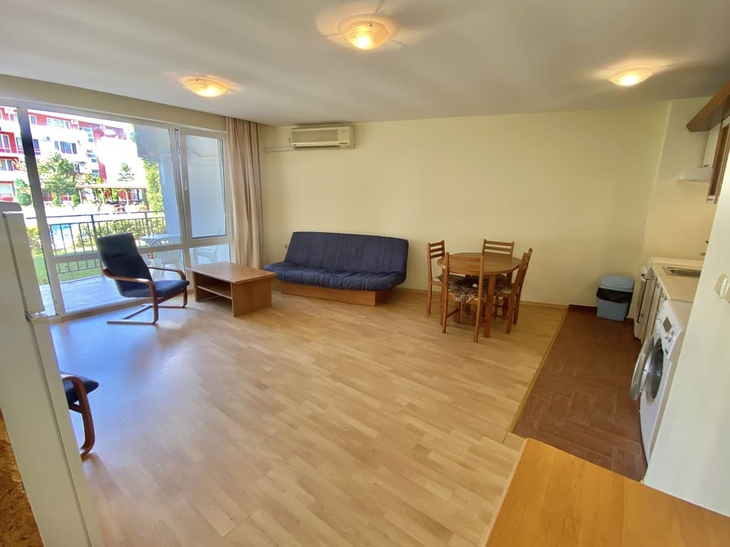 Есть утро, которое хочется повторять. Когда вы выходите босиком на террасу, ставите чашку кофе на столик, чувствуете свежий воздух, наполненный морской влагой, и смотрите на гладь воды в бассейне — всё это всего в 15 метрах от вас. Это не образ, а сцена из повседневности этого апартамента в комплексе Privilege Fort Beach, Елените.