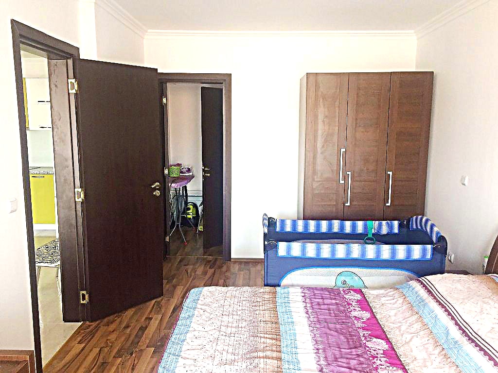 Продаётся апартамент с 2 спальнями в комплексе «Олимп». Апартамент расположен на 3 этаже здания, общая площадь жилья составляет 95.59 м2. Продаётся с мебелью и бытовой техникой. Состоит из прихожей, гостиной с кухонной и столовой зон, 2 спальни, 2 сан.узла с душем, кладовка-гардеробная. Апартамент так же имеет большую террасу с видом на горы. Окна апартаментов выходят на восток. Комплекс находится в 250 м. от моря и в 500 м. от яхт.порта «Марина Диневи». В комплексе имеется ресторан, открытый комбинированный бассейн площадью 300 кв. м., подземная и наземные парковки, детская площадка, видеонаблюдение и охрана 24ч. В шаговой доступности находится медицинский центр, автобусная остановка и центральная площадь Святого Власа, где расположены различные магазины, кафе, рестораны, супермаркеты.